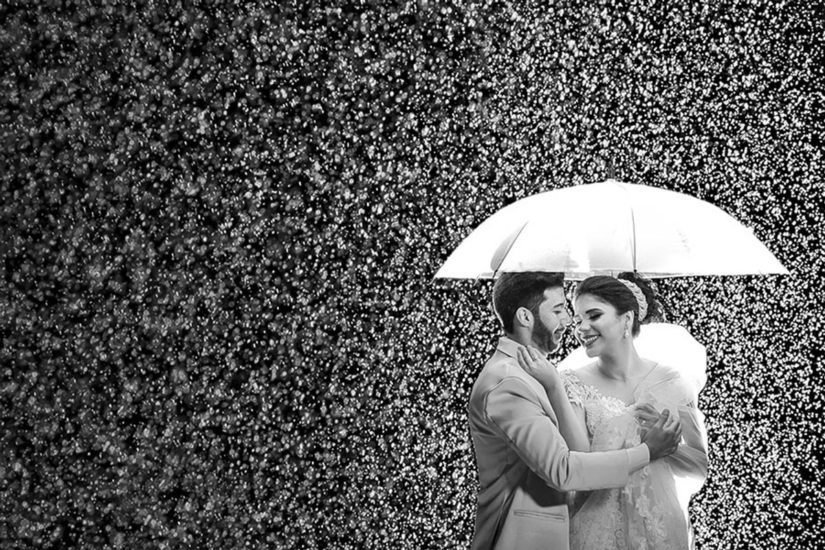 Confiança: Convencer o casal a fazer uma foto na chuva não é nada fácil, mas isso faz parte da confiança que o fotógrafo acaba conquistando através do ensaio, briefing, etc.